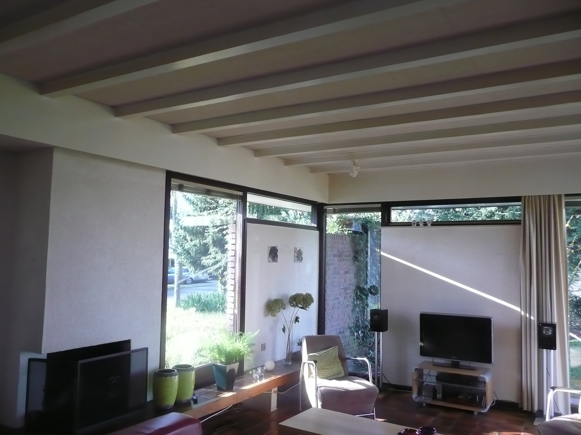 De opdrachtgever wilde deze aangekochte bungalow opknappen met een reëel niveau naar het comfort van deze tijd met een eigentijds uiterlijk zonder het karakter van deze charmante woning geweld aan te doen. In plaats van te kiezen voor een aannemer, nam hij ons in de armen om de projectbegeleiding te doen vanuit een esthetisch en kostenbewust oogpunt. Vooral dat laatste kon goed vanwege onze onafhankelijke rol. Na de bouwkundige en installatietechnische inventarisatie, hebben wij samen met de opdrachtgever de uitgangspunten c.q. ingrepen bepaald. Dit betekende de gevels opnieuw keimen, het schilderwerk in eigentijdse kleuren, de gevel na-isoleren en de overstekken gerenoveerd. Binnen is de restyle het meest extreem. Alle afwerkingen zijn vernieuwd een nieuwe keuken geplaatst en de trap gerenoveerd. Installatietechnisch is de Brink luchtverwarming intact gebleven, alleen de ketel is vervangen. De bewoners ervaren dit nog steeds als een zeer comfortabel systeem. Het proces vanuit de functie van een regisserende architect liep van alle kanten erg goed en is ook kostentechnisch erg gunstig gebleken. Hieronder een geschreven aanbeveling van de opdrachtgever: "We kochten dit huis om een aantal redenen. De ligging, de unieke bouw, de ruimten en de potentie die het had. Voor de aankoop waren er wel ideeën over de renovatie maar we konden deze nog niet goed omschrijven omdat je niet weet hoe een huis woont. Er lag al ruim voor de aankoop van de woning een offerte bij een aannemer. In die offerte waren een aantal standaard wensen opgenomen. Na de aankoop zijn we er gaan wonen en kwamen al snel tot de conclusie dat dit project ambitieus was en dat wij als opdrachtgever niet de tijd en expertise hebben om het goed te kunnen begeleiden. We vonden uiteindelijk ook dat de aannemer niet als projectleider zou kunnen fungeren in een renovatietraject van deze omvang. Een aannemer is in onze ogen iemand die een uitvoerende rol heeft en zijn eigen mensen prima kan aansturen maar in een project als deze heb je te maken met verschillende disciplines. Bovendien zochten we iemand die niet alleen de bouw begeleidt en zorgt voor een adekwate planning maar ook met creatieve ideeën komt als wij het even niet weten. Zo zijn er diverse zaken aangepakt die wij niet hadden kunnen voorzien maar die voor de woning een absolute meerwaarde zijn geworden. Ondanks het feit dat daar mee wel de kosten zijn toegenomen zijn we wel tevreden over het eindresultaat. Voor de begeleiding van deze renovatie leek ons een architect geknipt voor deze rol. Via internet zijn we gekomen op het architectenburo Duoplan. Via referenties kwam ik er achter dat zij ook ervaring hebben met soortgelijke renovatieprojecten. We zijn erg tevreden over het geleverde werk van Duoplan. Vanaf het eerste contact, de intake, tot en met de oplevering hebben we uitstekend kunnen samenwerken. In het begin waren we sceptisch over een mogelijke meerwaarde van een architect maar gaandeweg het project bleek dit ten onrechte. Een echte aanrader dus."