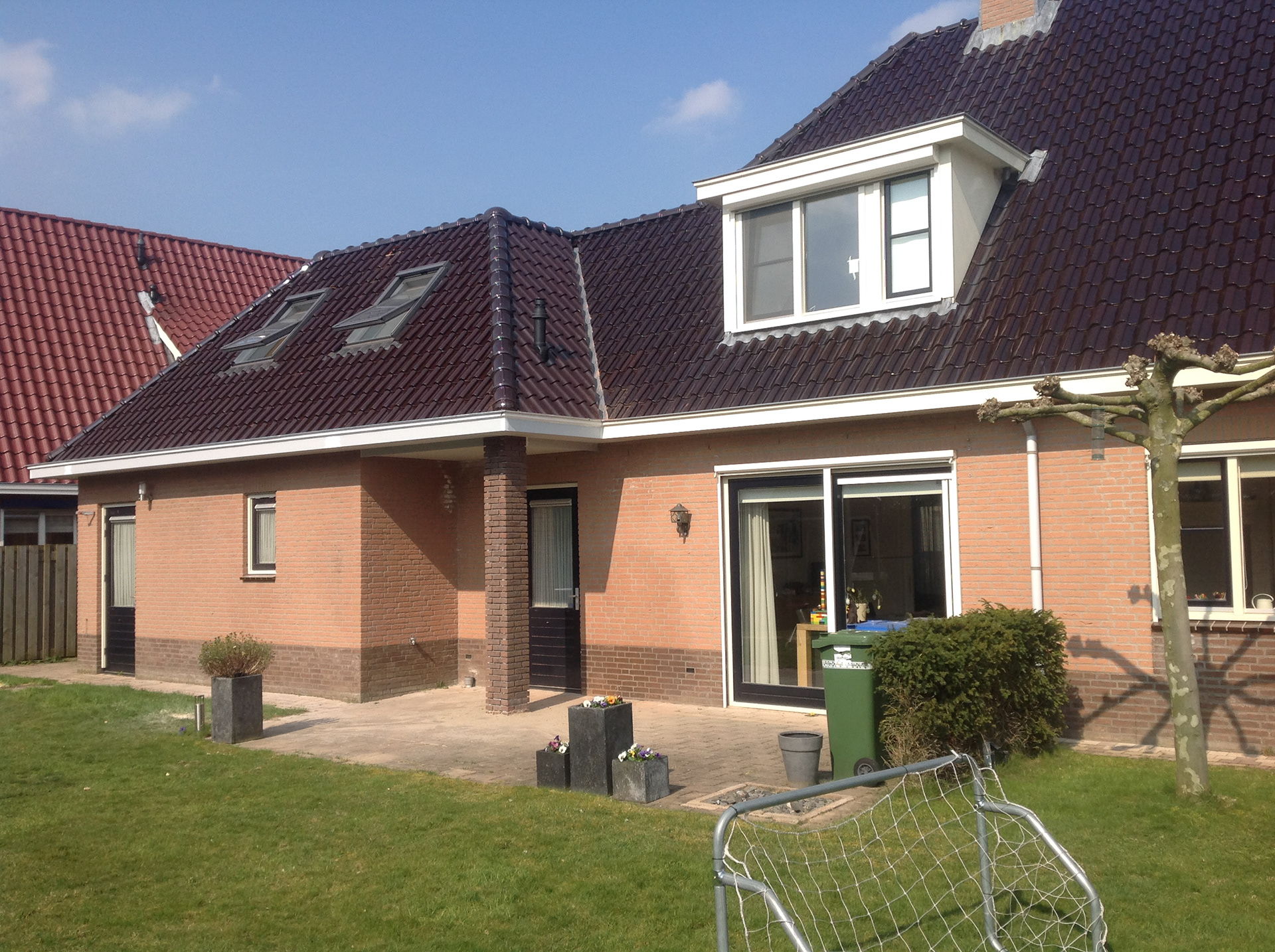 Bij deze uitbreiding was de wens voor meer ruimte in de kap, maar wel een uitbouw die goed paste bij de oorspronkelijke woning. De dakvloer van de garage was bij de bouw al voorbereid op een toekomstige dakopbouw. Dit gegeven is aangegrepen om veel ruimte te creëren met een dakopbouw die goed bij de stijl van het huis past. Wij hebben veel complimenten gekregen dat het huis nu meer 'af' is, maar ook van mensen die niet konden zien waar het huis dan uitgebreid was!