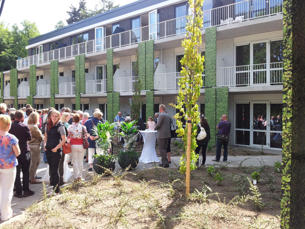 Voor het Gelre Ziekenhuis en zorgorganisatie 's Heerenloo ontwierpen wij deze woonaccommodatie van 3 woonlagen, met 71 volledig zelfstandige wooneenheden. Ook zitten in het gebouw algemene woonkamers, interne bergruimte en diverse facilitaire ruimtes. De prachtige locatie is goed benut door grote doorlopende balkons te maken met grote glasopeningen in de gevel. Op de begane grond en de eerste verdieping liggen in totaal 56 kamers voor studenten van Gelre ziekenhuizen. De kamers op de bovenste bouwlaag worden verhuurd aan 's Heeren Loo. Het gaat om 15 kamers waar cliënten zelfstandig wonen. Alle kamers beschikken over een eigen badkamer, keuken, balkon of terras en een woon- en slaapgedeelte. De oppervlaktes variëren van 20 tot 40 m2. Lage energiekosten werden bereikt door een goed te isoleren, met een CO2-gestuurde ventilatie, vloerverwarming en -koeling door warmte- en koude-opslag in de bodem.